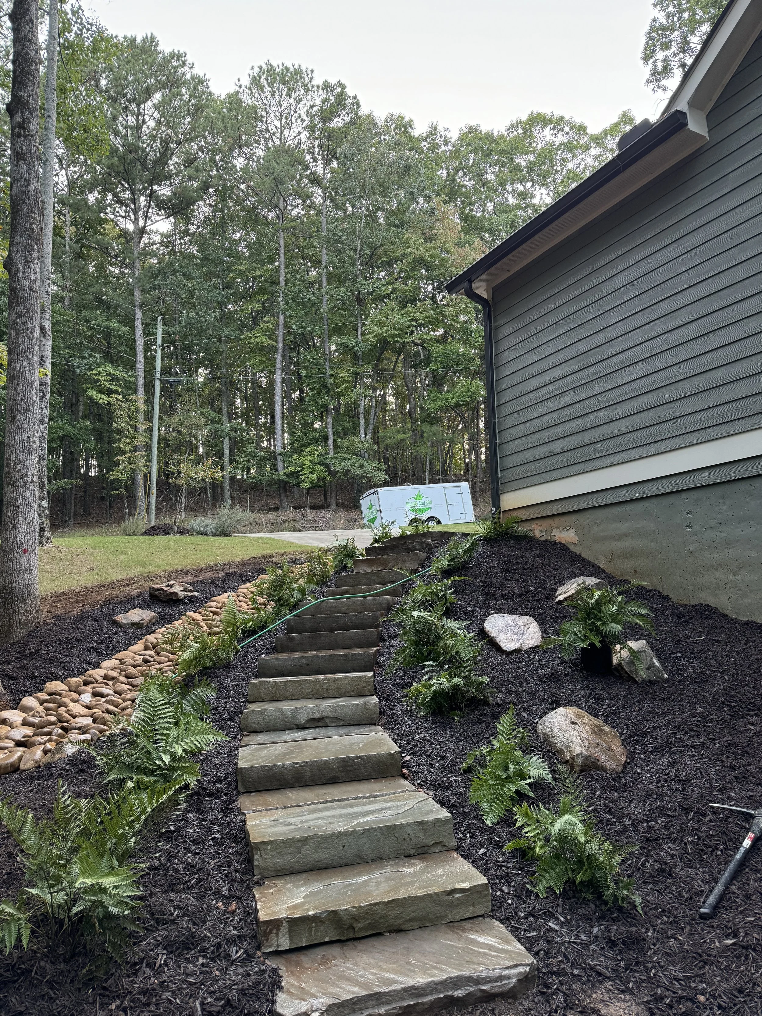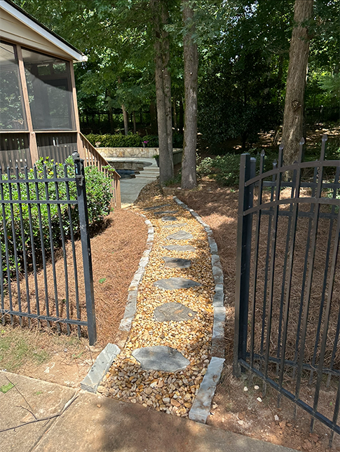 Want to add some style and functionality to your landscape? We have got you covered from stone walkways to rock creek beds, landscaping steps to retaining walls. Let us know what hardscaping or pine straw needs your landscape may have.